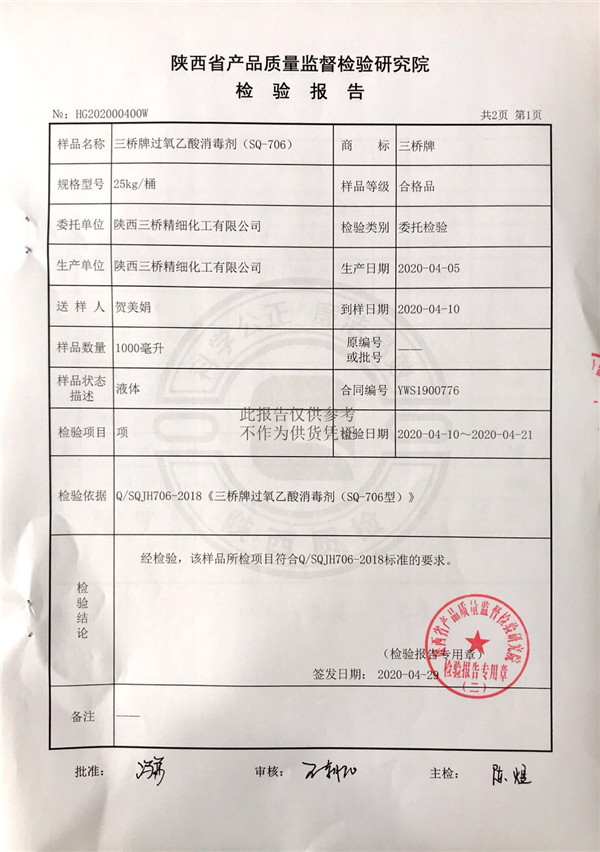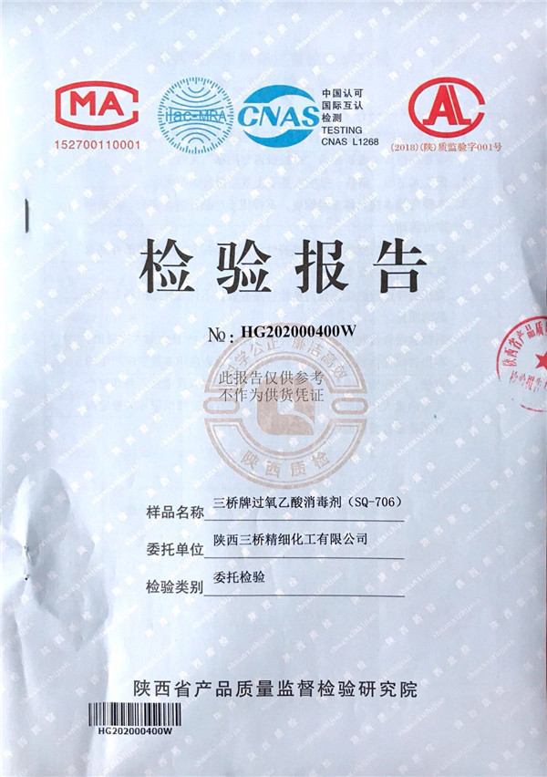三橋牌過氧乙酸消毒劑(SQ-706型)檢測報告