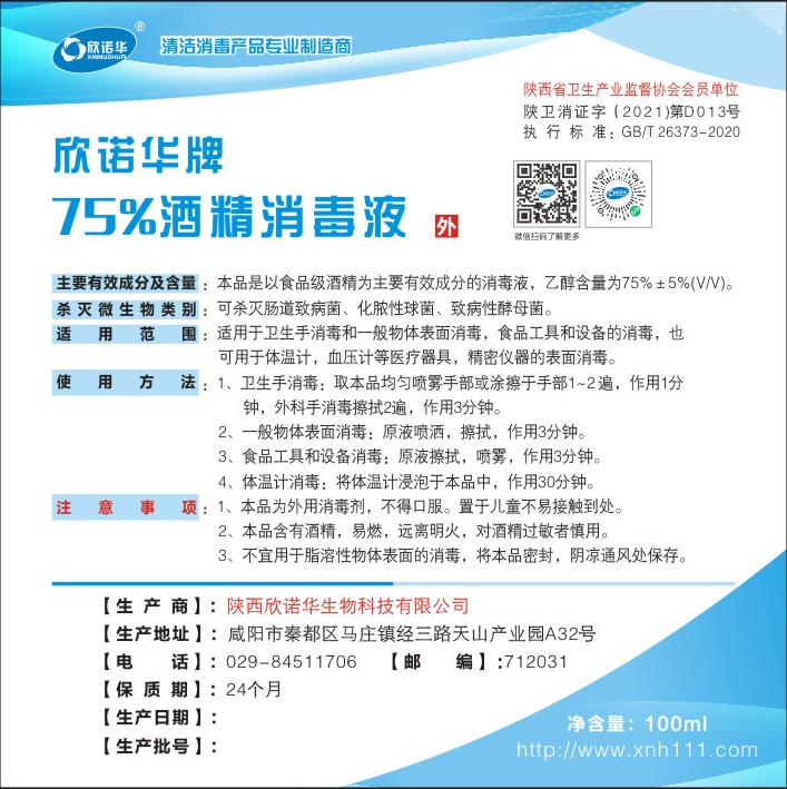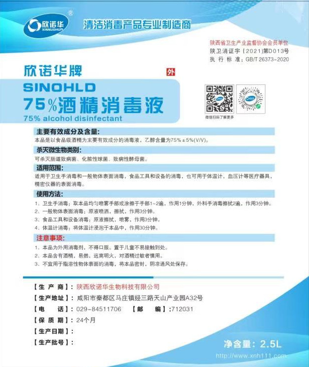 產(chǎn)品名稱 :欣諾華牌75%酒精消毒液 商標(biāo):欣諾華